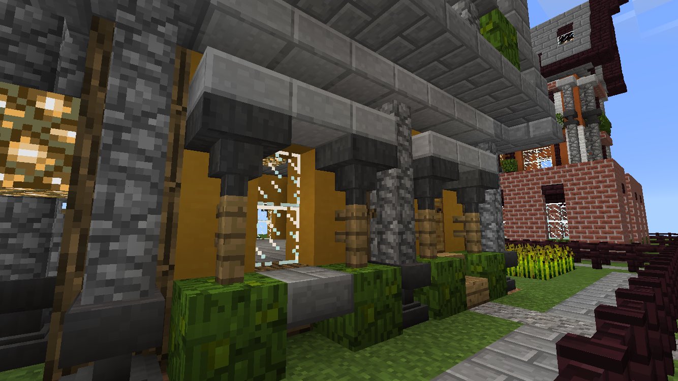 R Mcpe建築専用垢 Twitterissa 今回は黄色の色付き粘土 をメイン建材として使用しました 家に対しての屋根の比率を大きめに作ってみたところがポイントです さらに石レンガ で統一して重圧感を出してみました ところどころに緑を入れて